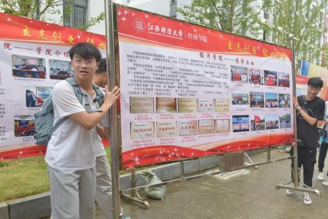 为将迎新工作落到实处,经济学院多次召开事前会议,将现场设备布置、人员安排、领取入学材料等多项事宜分配至学生会各部门,并于迎新开始前顺利完成各项准备工作,为新生营造了良好的入学氛围。9月11日下午,迎新工作正式开始,新生陆续进入校园报到。经济学院志愿者在校门外高举院旗,引领新生完成查验健康码、检查健康打卡等进校流程。随后新生在志愿者的带领下前往学院迎新接待点,在各自助班及下班党员的帮助下完成提交学籍表和报到证、领取校园卡等报到流程。完成报到后,高年级学长学姐们主动帮助新生搬运行李至宿舍。9月12日,虽然现场下起了雨,但依然没有浇灭现场人员的热情。迎新人员快速应对突发的天气状况,搬运物资至雨棚内、安排人员带伞到校门接应新生,有效维持了迎新现场的正常秩序,迎新工作依旧火热进行中。