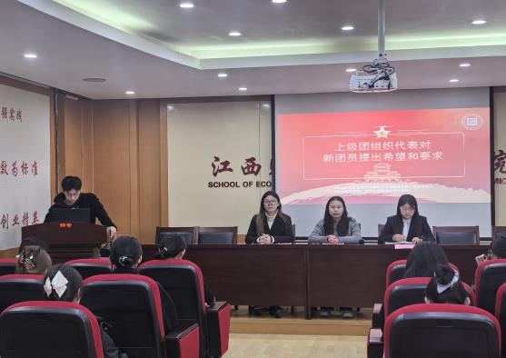 为加强新团员的光荣感、责任感和组织归属感,思想引领,增强共青团组织的凝聚力和战斗力,2025年12月10日,经济学院举行新团员入团仪式,学院团委书记万婧怡、团委学生干部及新发展团员出席仪式,共有50名优秀青年学子光荣加入中国共产主义青年团。