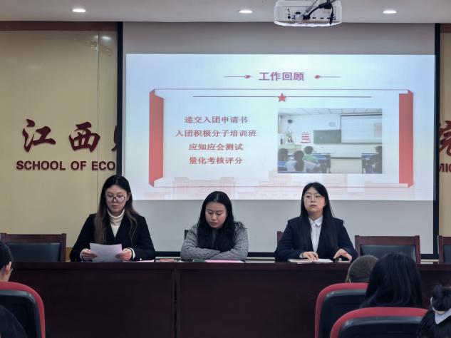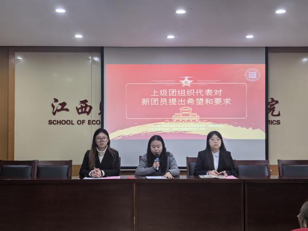 学院团委学生副书记刘圆君阐述了入团仪式的重要意义,她指出,入团是青年学生向党组织靠拢、投身国家建设的重要一步。随后她回顾了2025年度团员发展工作,宣读经济学院2025年度新发展团员名单。