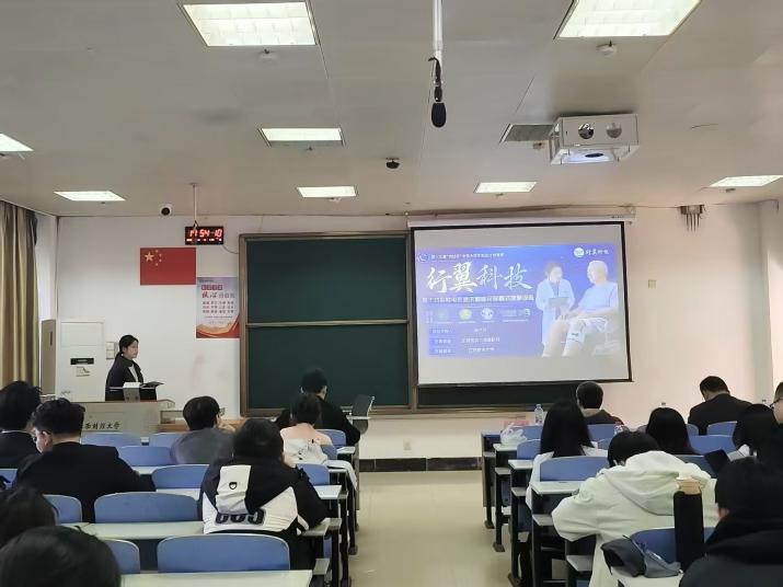 在路演环节,各团队依次登台借助PPT展示,从项目背景、市场分析、产品研发到发展前景等方面进行了系统阐述。选手们不仅突出项目的差异化优势,还紧扣当前市场需求与行业痛点,深入剖析了项目的可行性与现实意义,展现出扎实的专业素养和较强的实践探索能力。