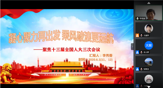 6月12日下午,全国人大代表李秀香教授应邀为经济学院师生宣讲全国两会重要精神,学习活动通过视频会议形式进行。党委书记邹春发、副书记李大晖、副院长黄和平以及全员师生140余人参加学习。会议由邹春发书记主持。