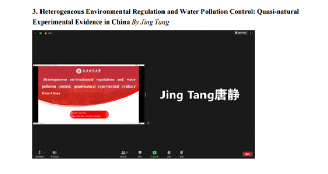 8月15日,经济学院研究生唐静参加了美国农业经济学和应用经济学协会举办的线上年会(Agricultural & Applied Economics Association Annual Meeting, AAEA 2020),并在会议上汇报了同导师潘丹,经济学院研究生何咪咪合作的论文“Heterogeneous Environmental Regulation and Water Pollution Control: Quasi-natural Experimental Evidence in China”。